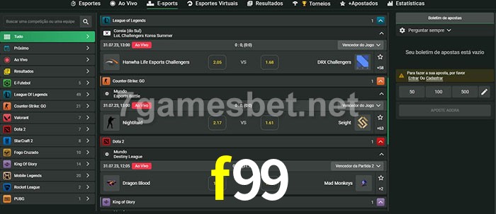 A aposta f99 oferece aos jogadores a experiência mais conveniente de apostas em eSports!